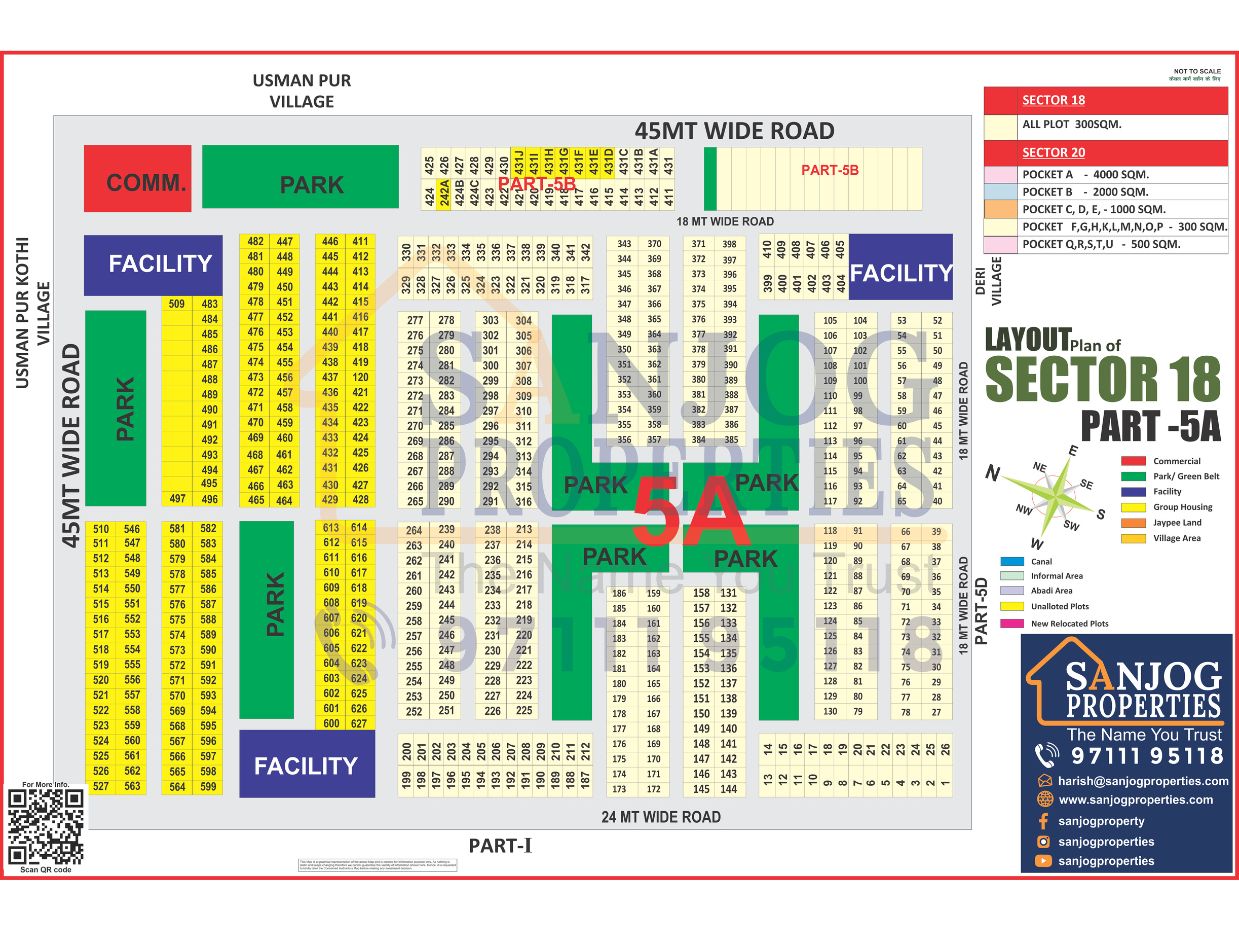 A 45-meter-wide road runs along both sides of Part-5A. The 45-meter-wide road has spacious green belt on the both sides of the road.
